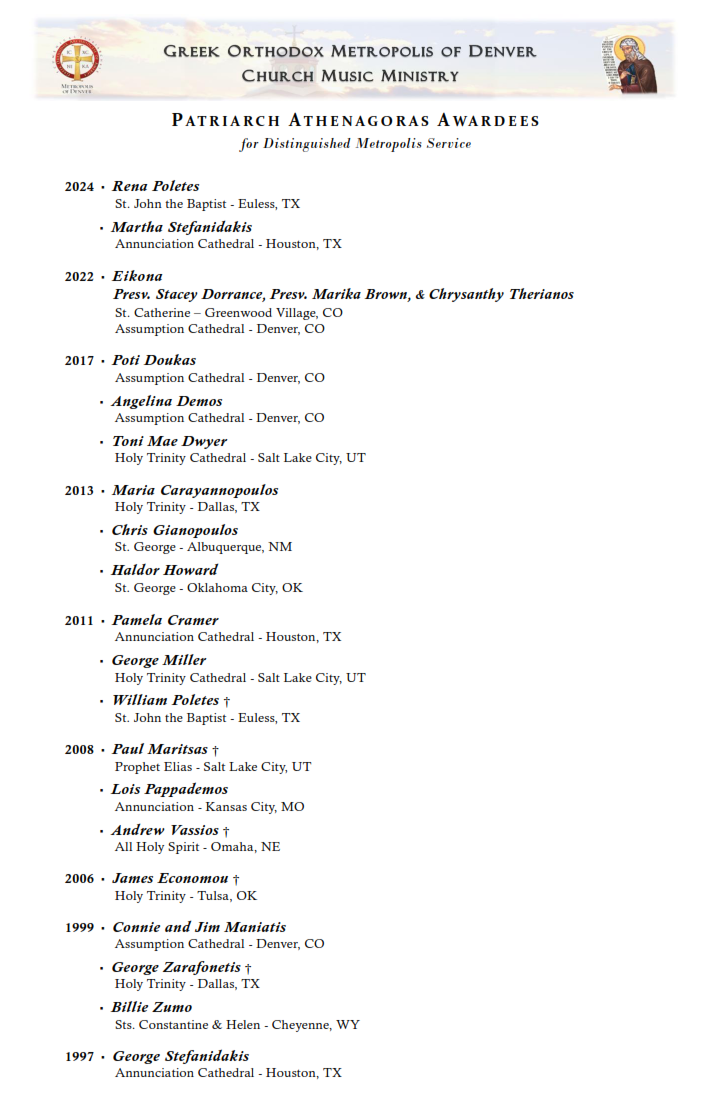 Patriarch Athenagoras Awardees For Distinguished Metropolis Service